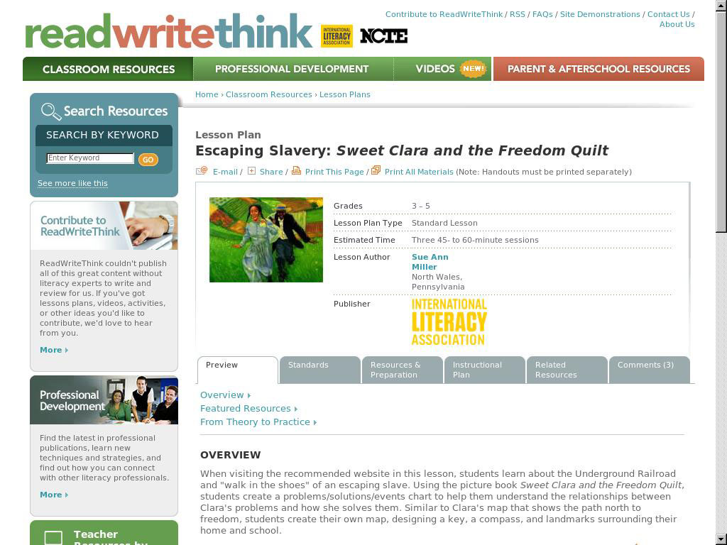 When visiting the recommended website in this lesson, students learn about the Underground Railroad and "walk in the shoes" of an escaping slave. Using the picture book Sweet Clara...