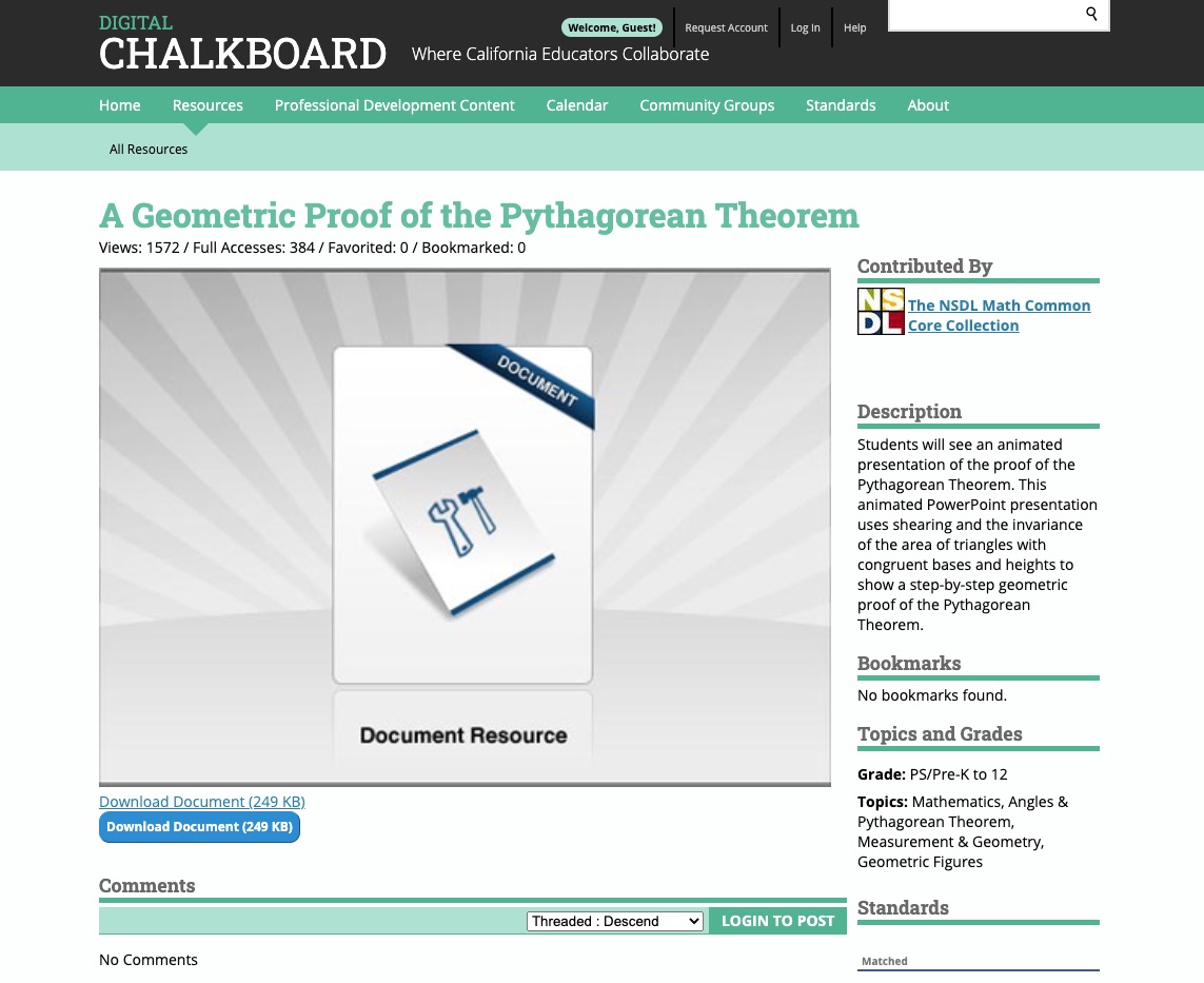 Students will see an animated presentation of the proof of the Pythagorean Theorem. This animated PowerPoint presentation uses shearing and the invariance of the area of triangles ...
