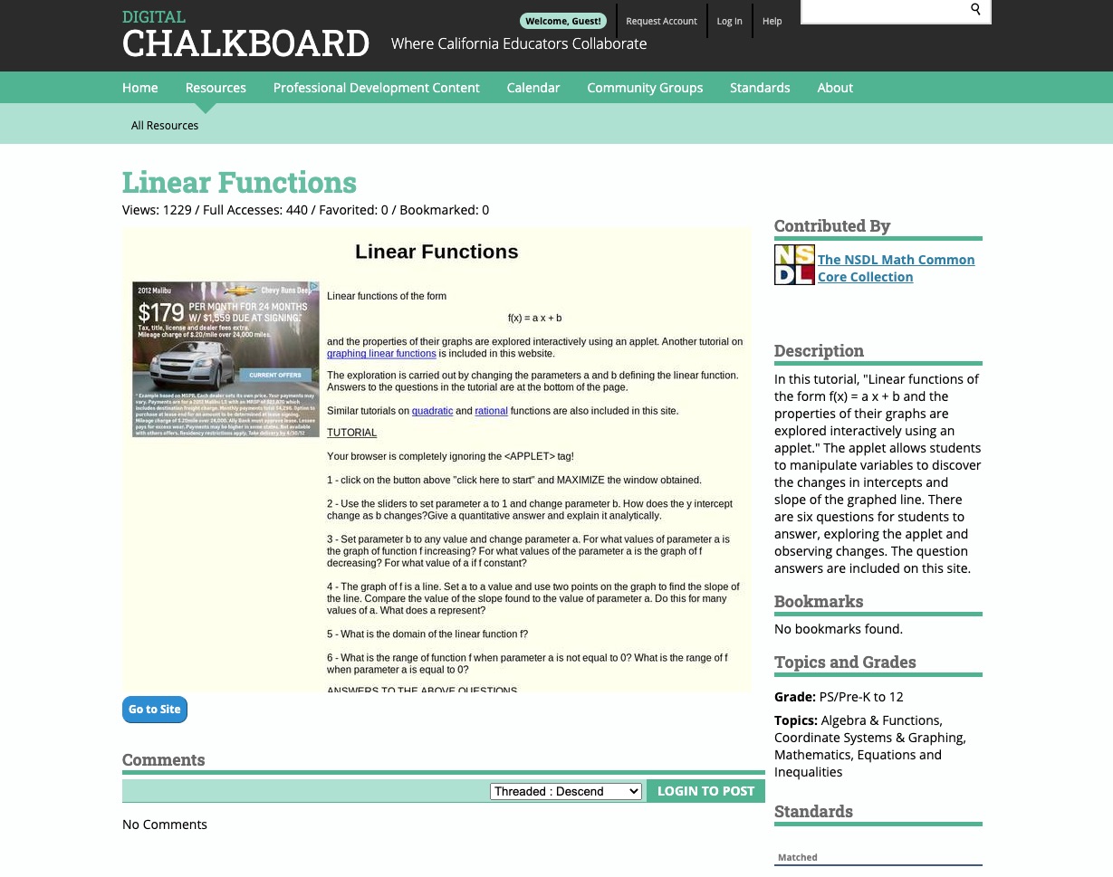In this tutorial, "Linear functions of the form f(x) = a x + b and the properties of their graphs are explored interactively using an applet." The applet allows students to manipul...