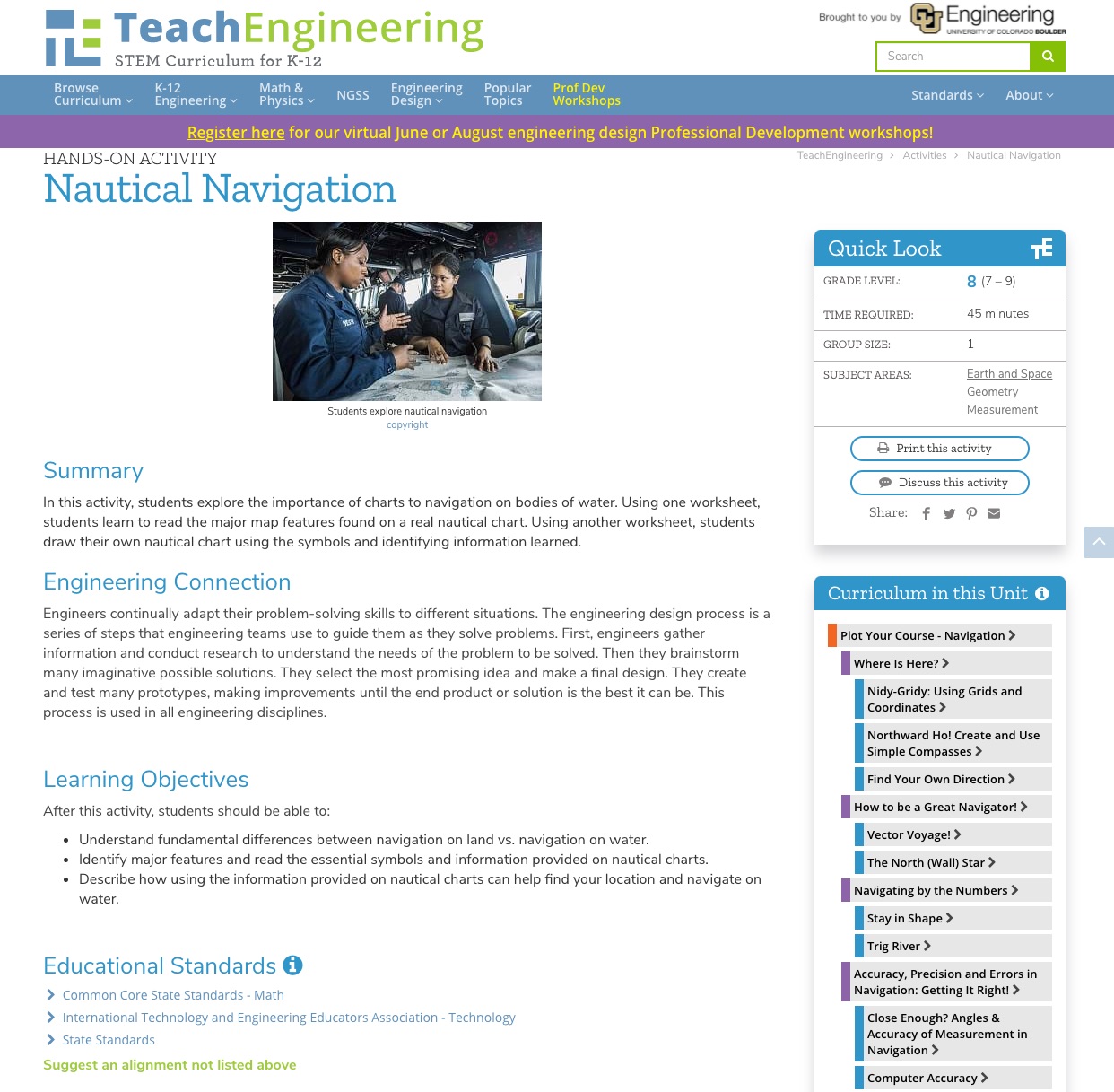 In this activity, students explore the importance of charts to navigation on bodies of water. Using one worksheet, students learn to read the major map features found on a real nau...
